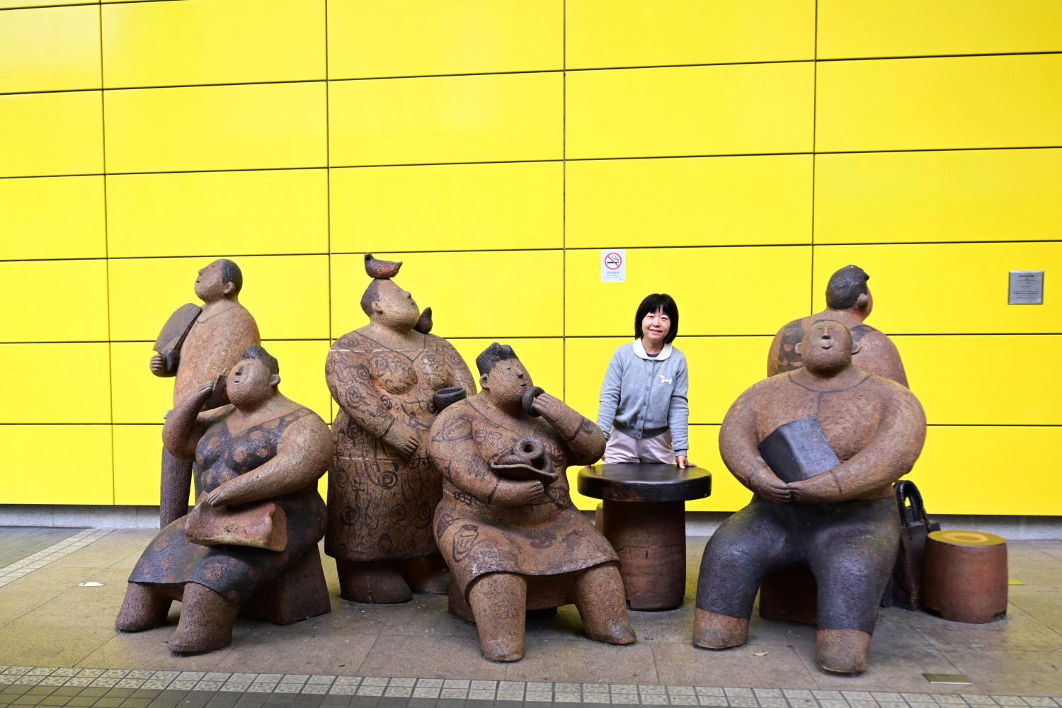 出地铁站,一群雕塑, 主题不明,足够令人莞尔。