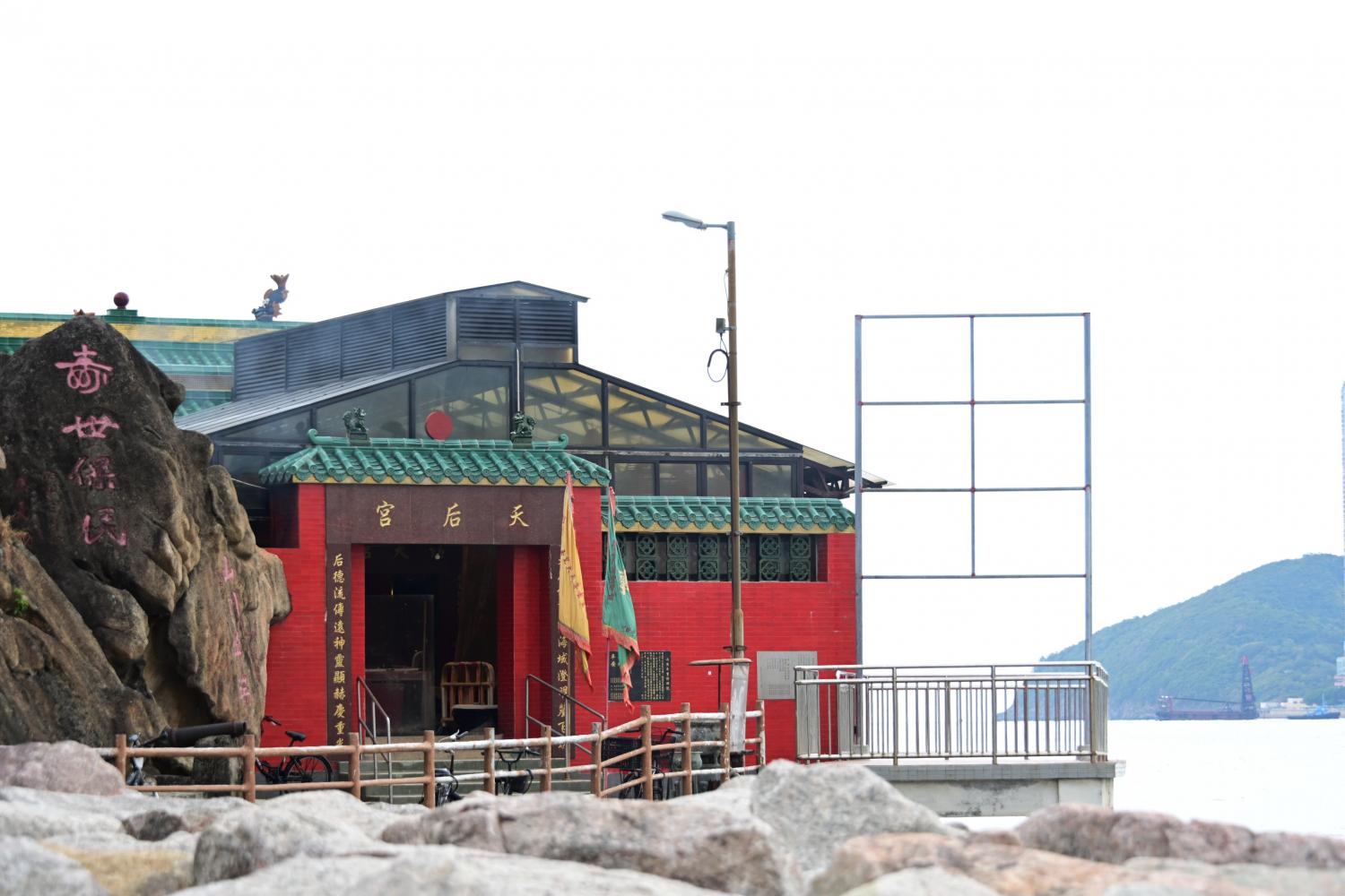 庙宇周围堆叠着许多奇异形状的巨石,石上有 “泽流海澨”、“海天揽秀”、“寿世保民”、“奇石钟灵” 等题刻,庙外路旁还放置了多尊古炮。
