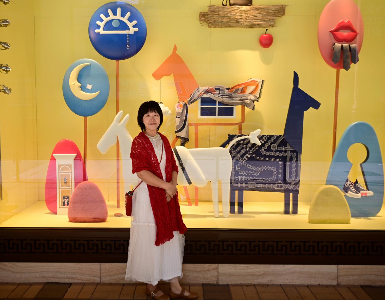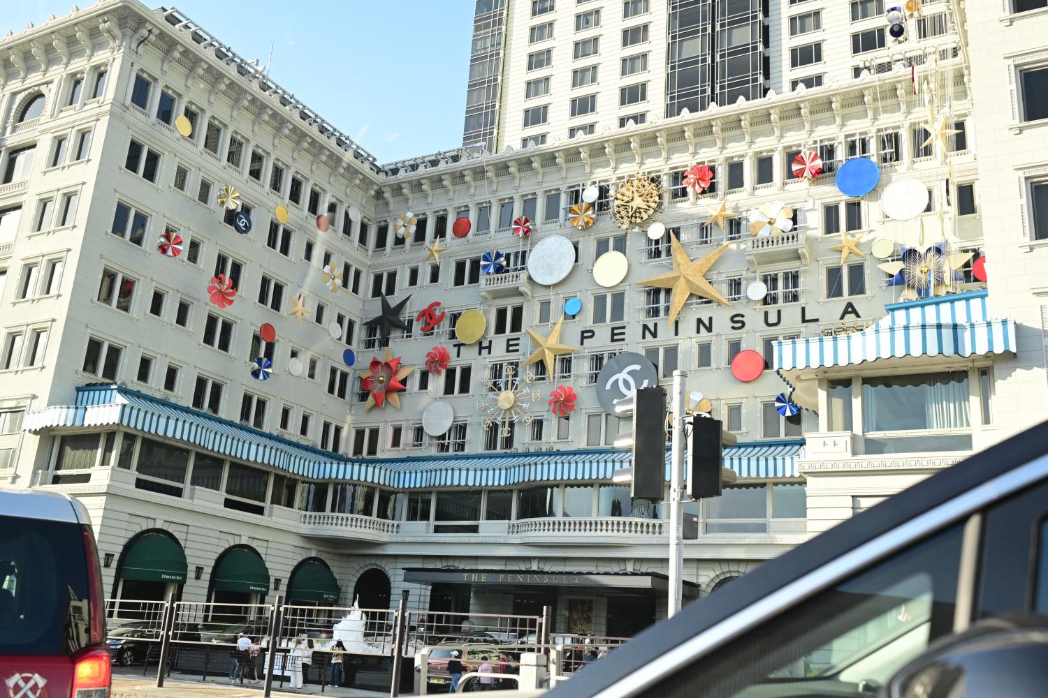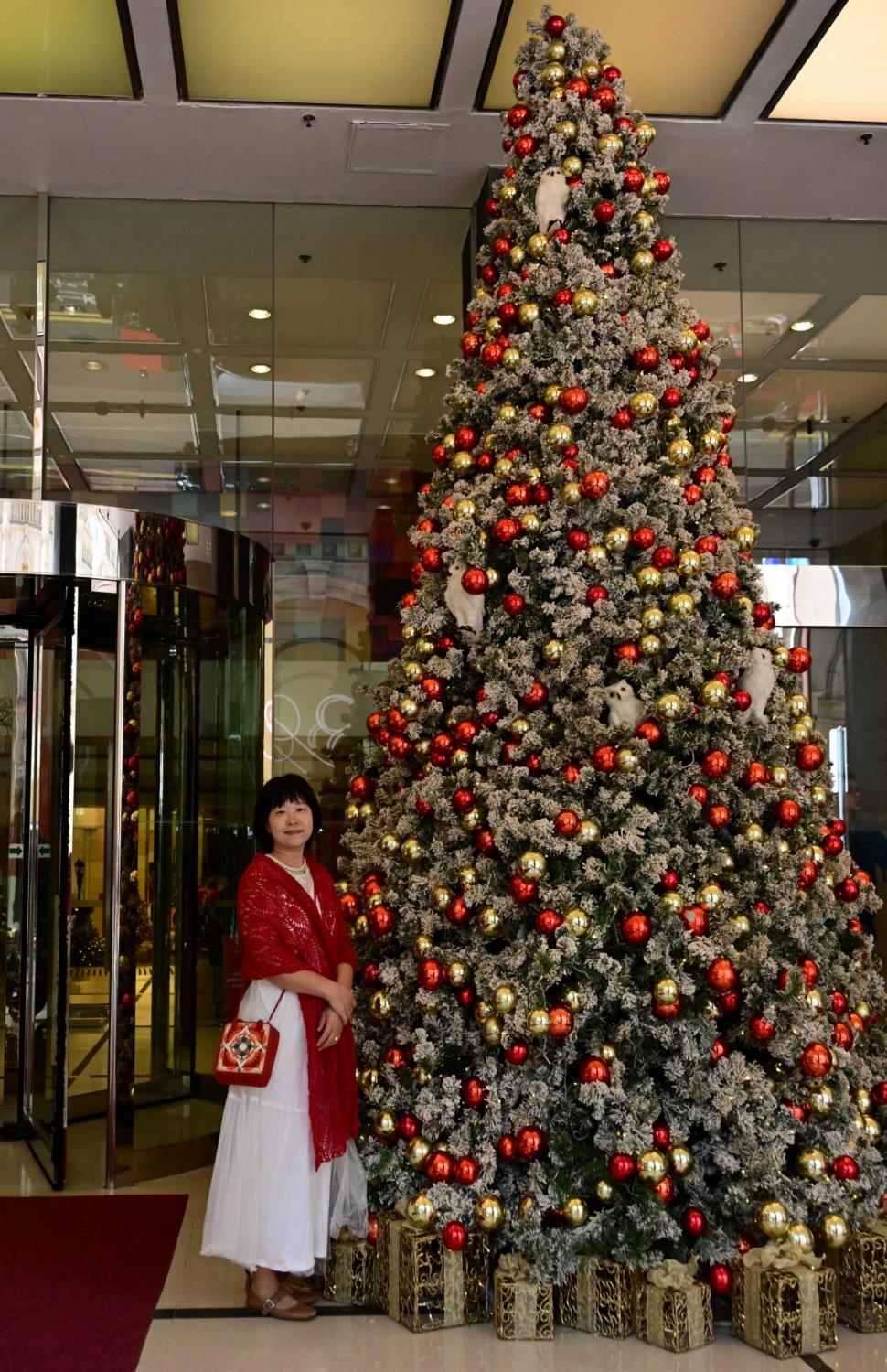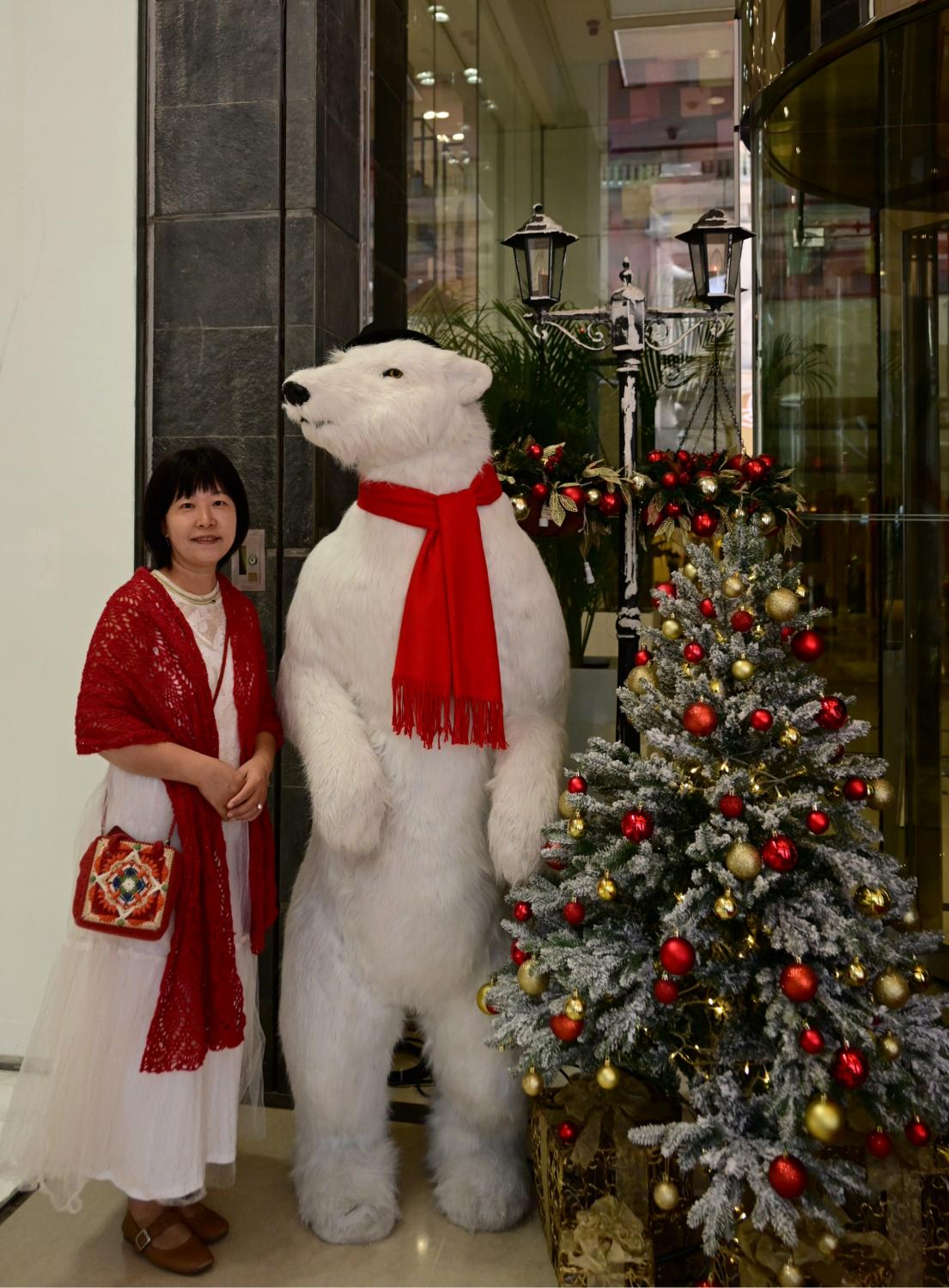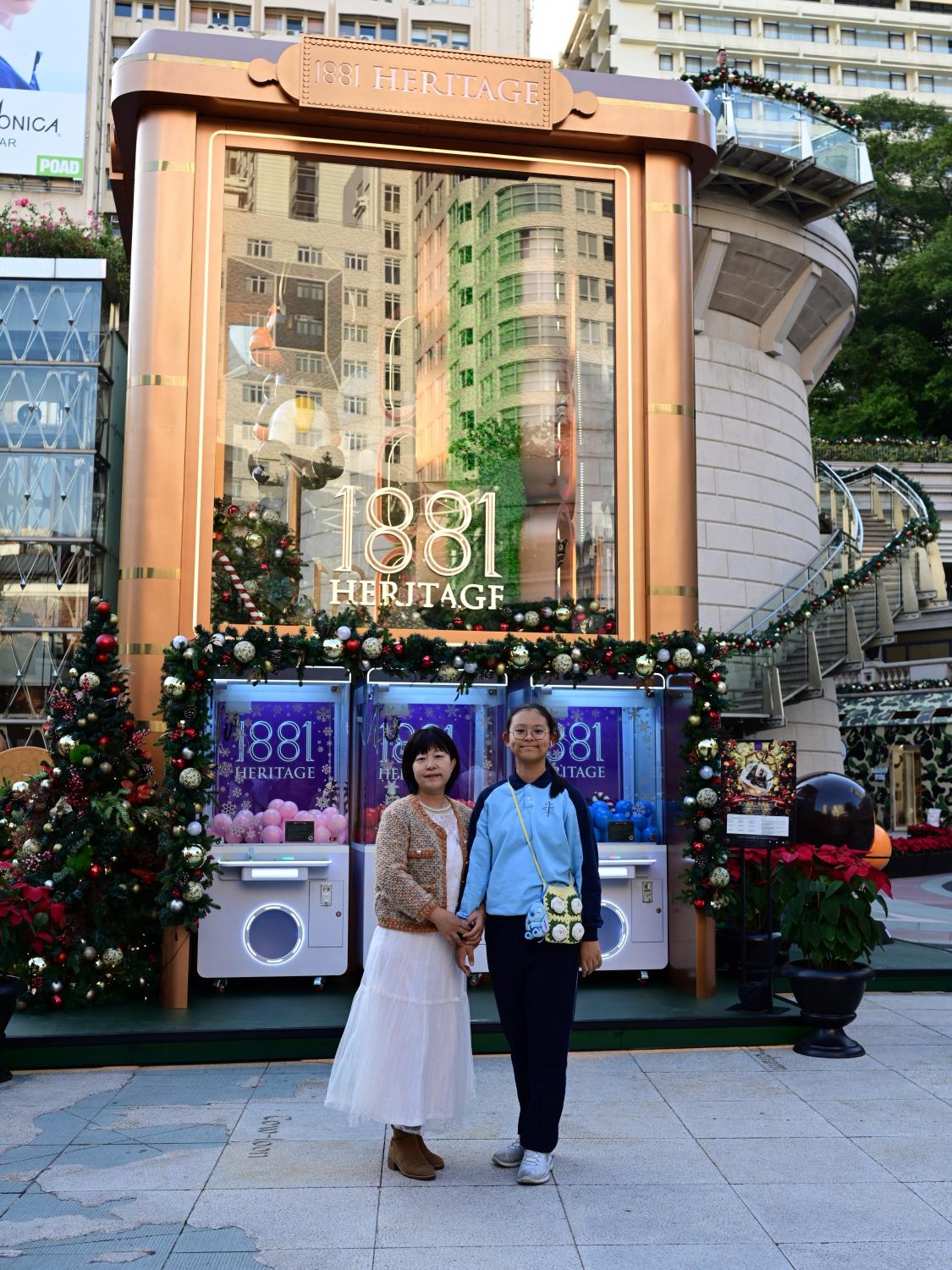 经过1881 Heritage的庭院,也是与圣诞节相关的装饰。与衣襟合影,比衣襟矮了许多。