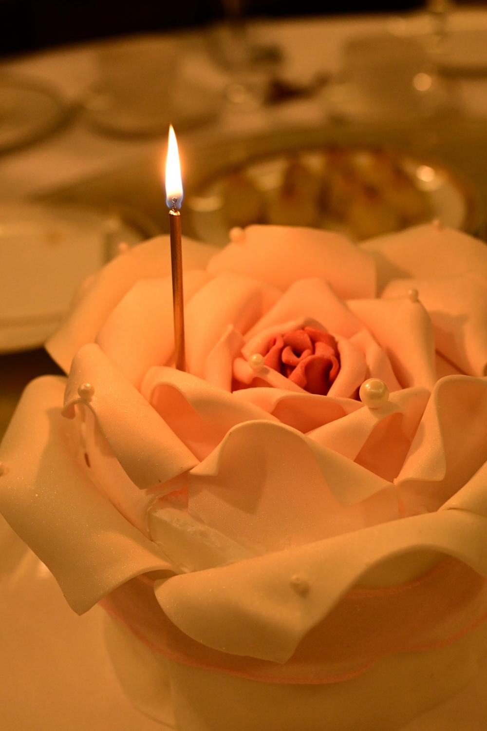 生日蛋糕也亮相了,好大一朵玫瑰花,粉色的调调,很柔很美。