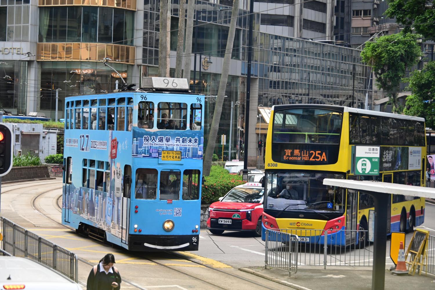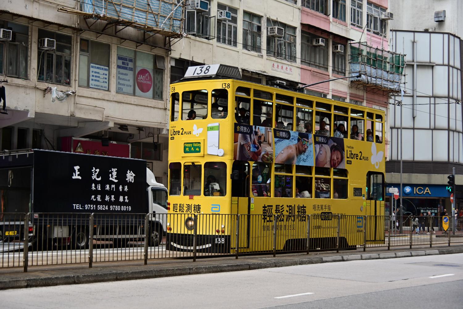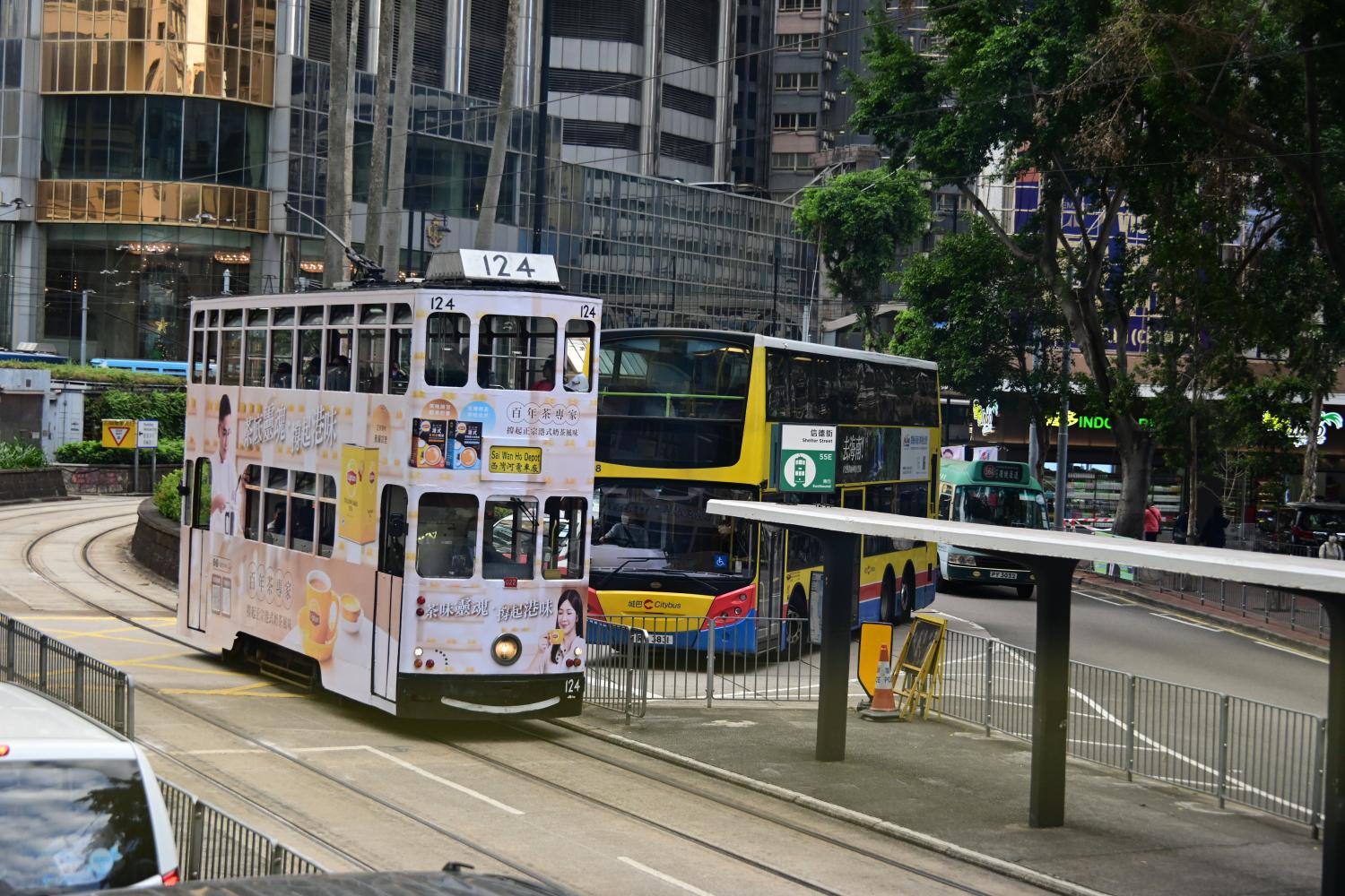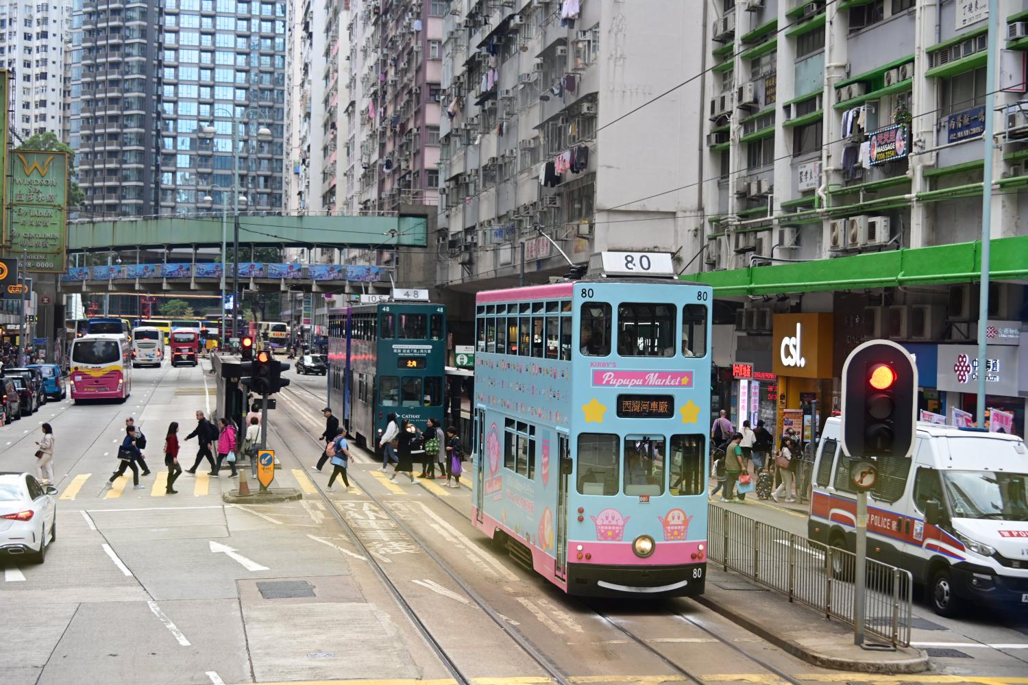 到北角,需转乘大巴车。过马路时,发现了叮叮车。