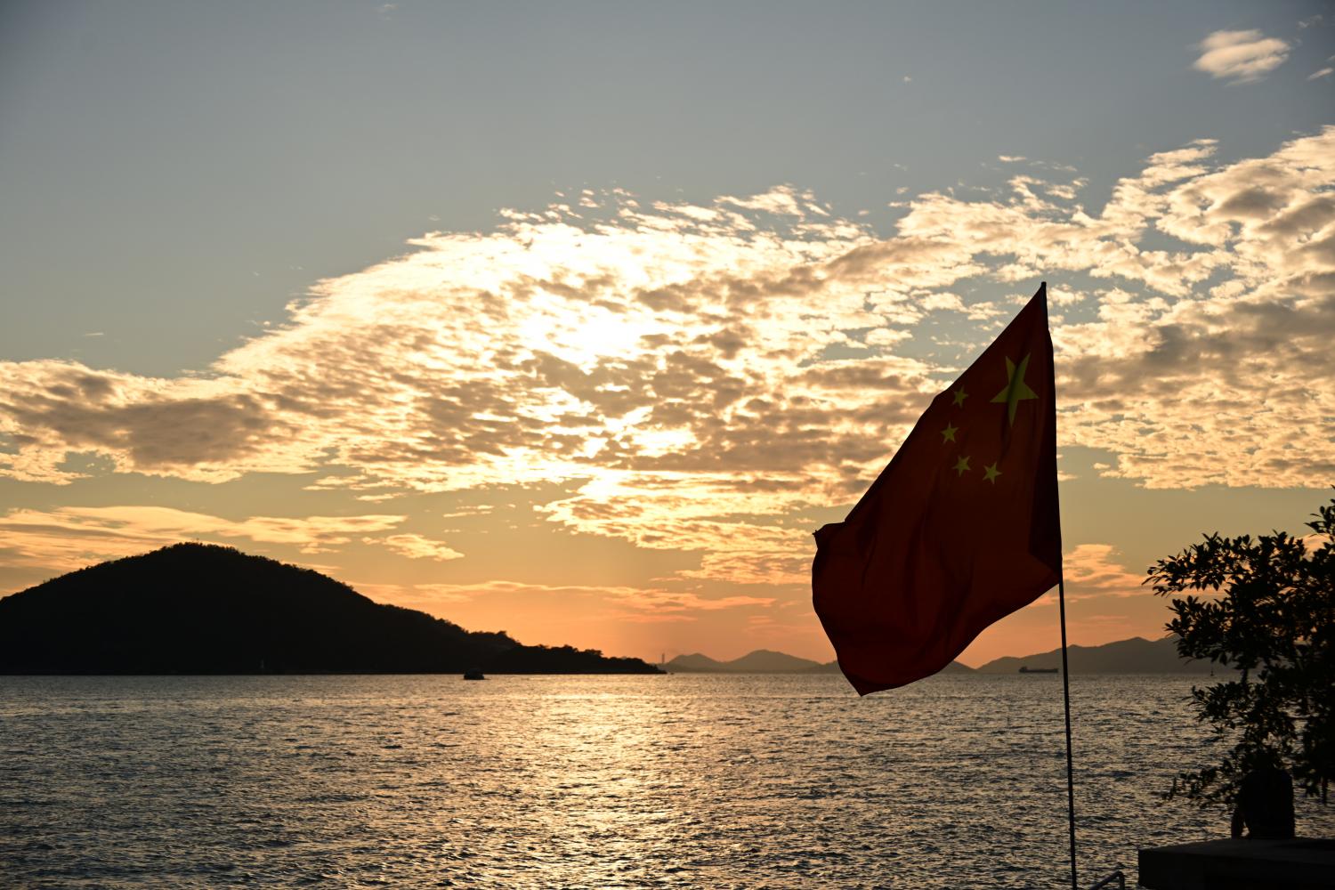 还发现了一面国旗,在夕阳之下,特别鲜红。