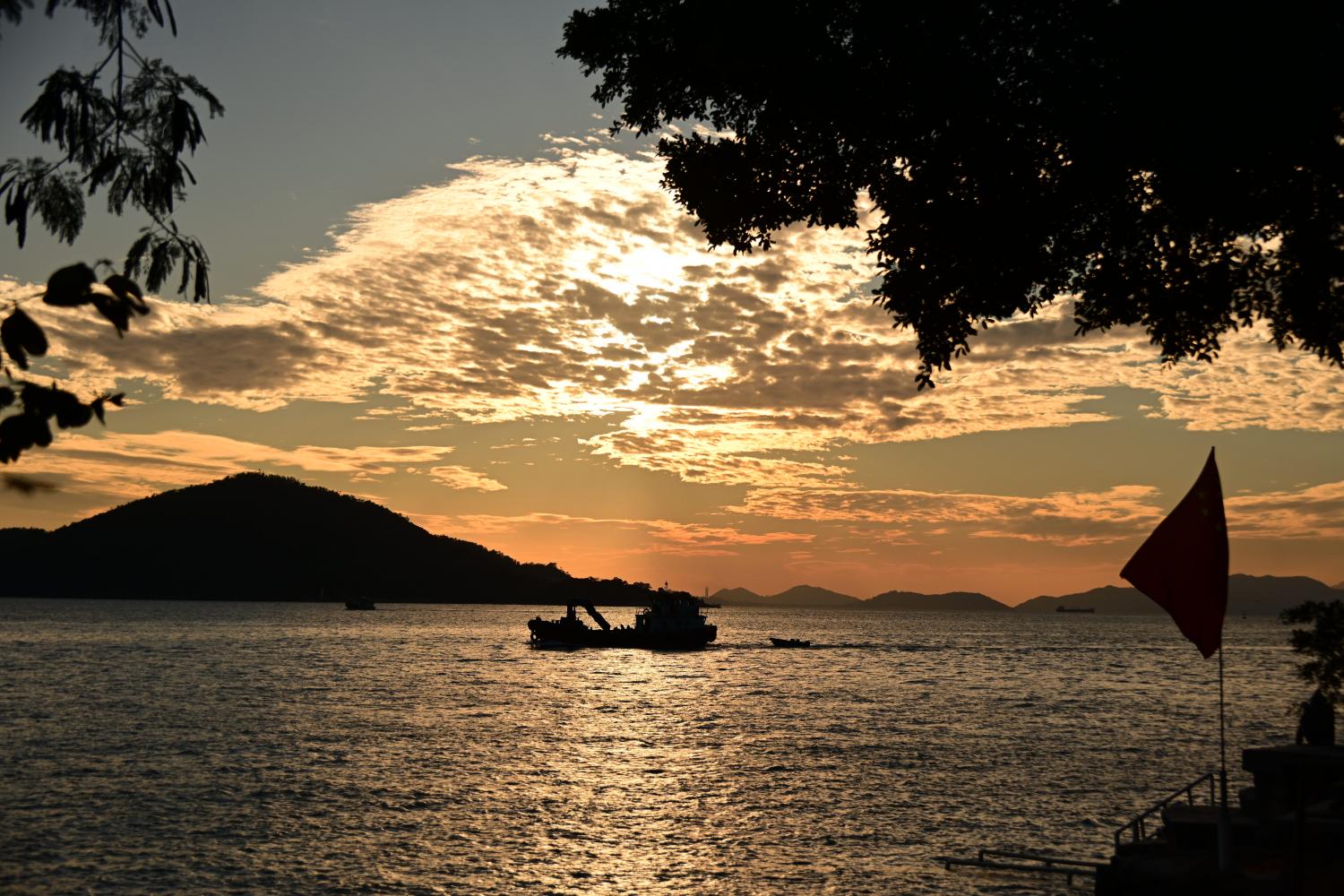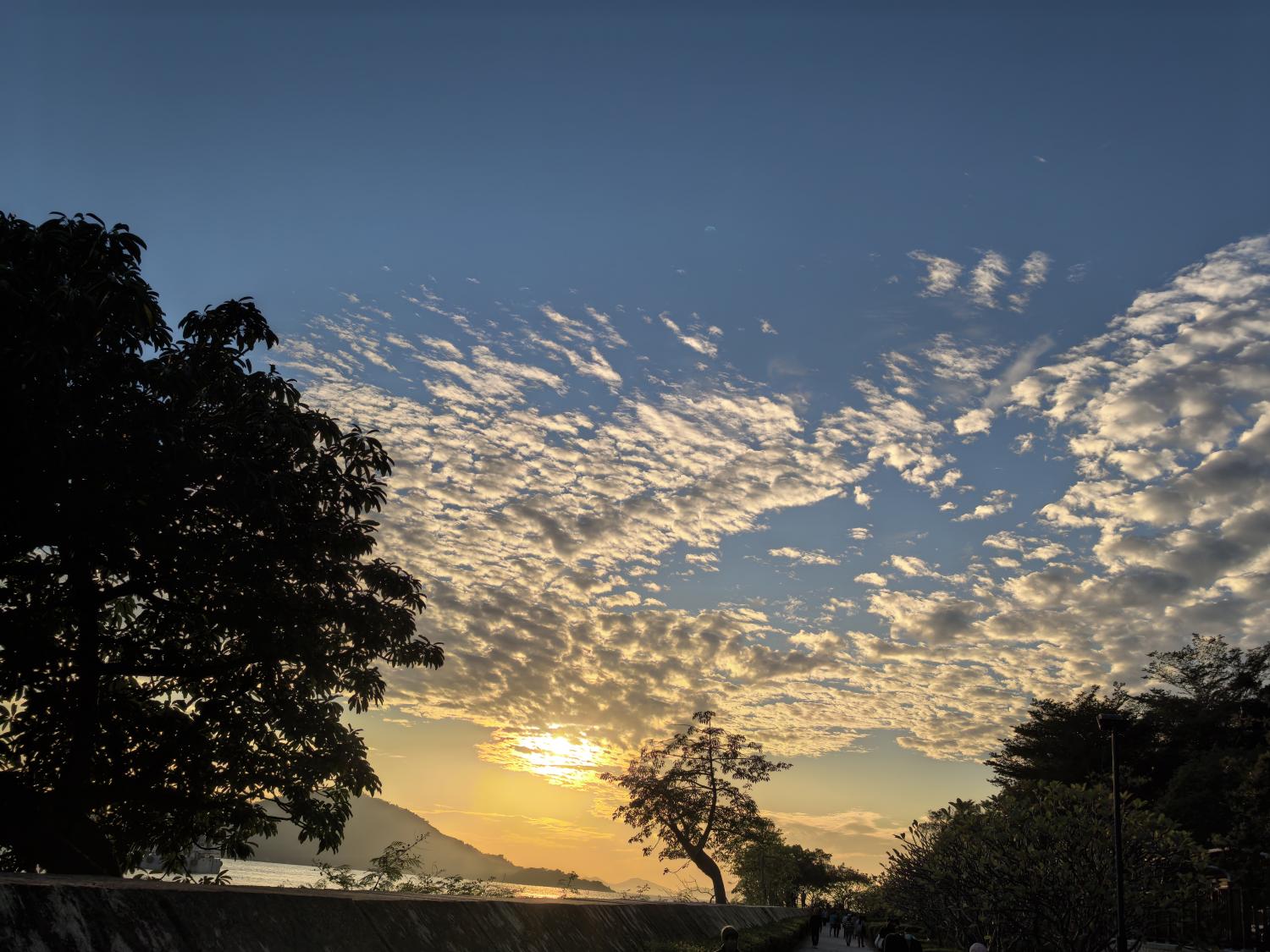 运气不错,刚好有日落,刚好在海边, 还刚好有晚霞。