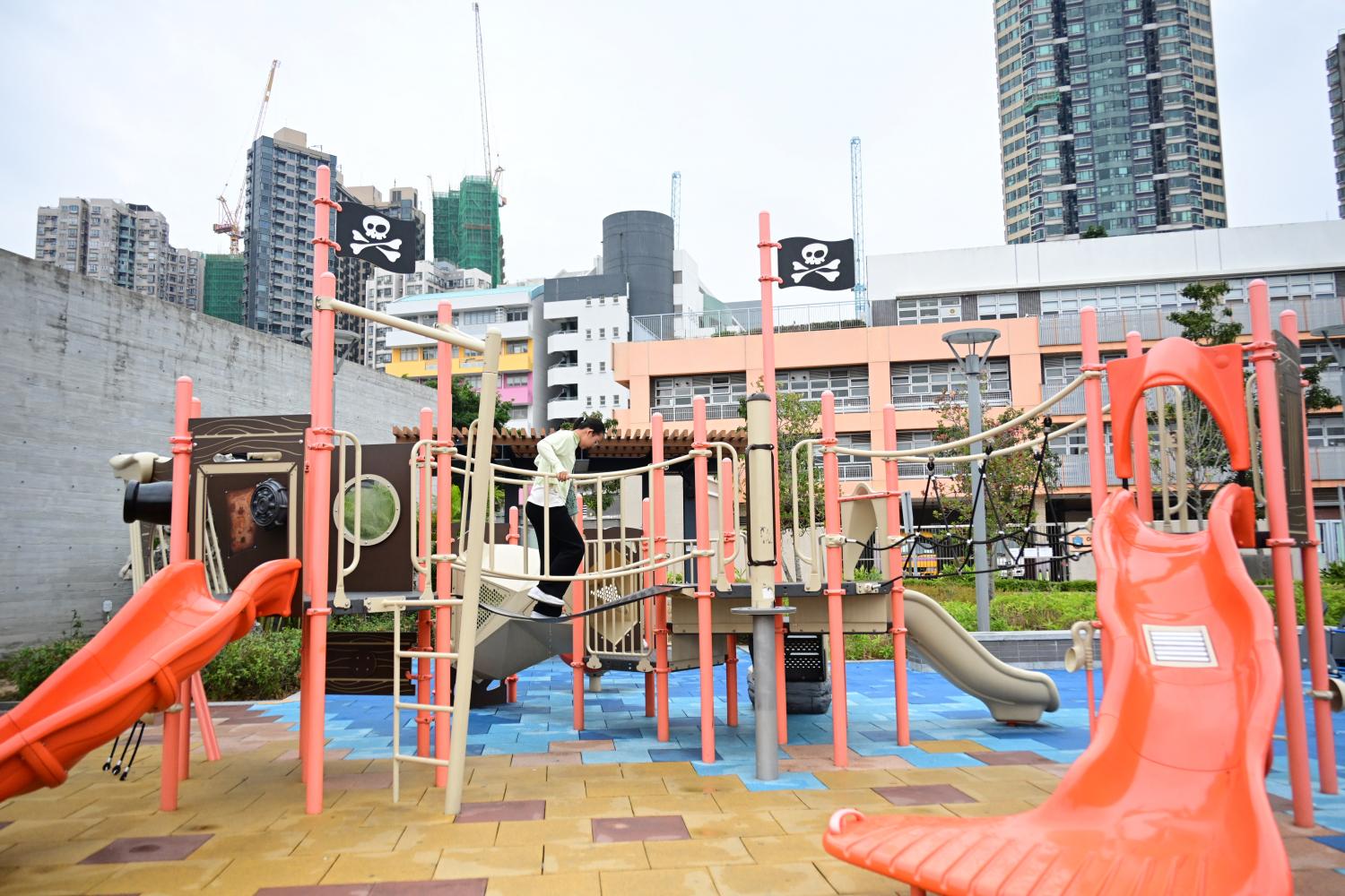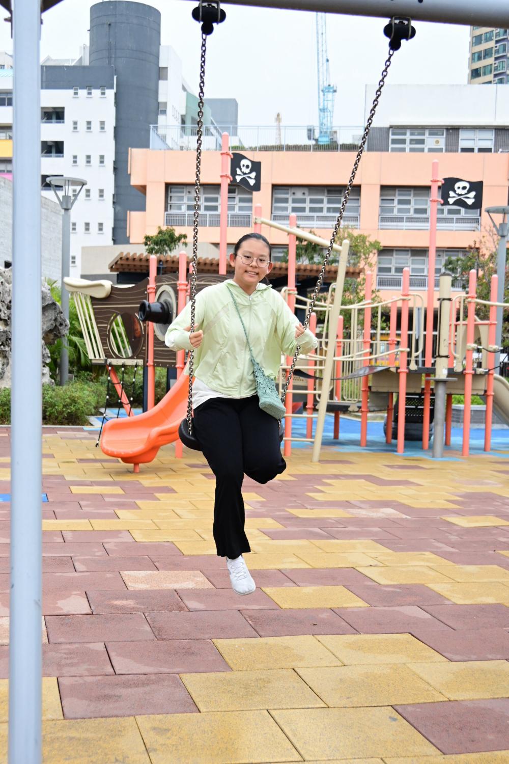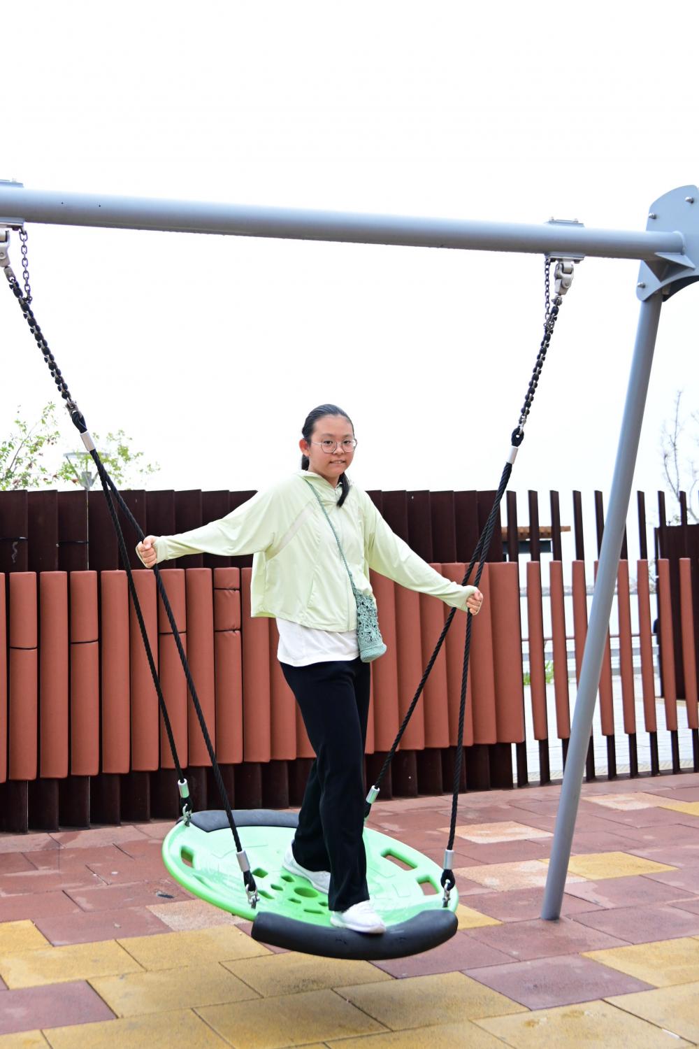 算计好了出门的点,下楼,经过游乐场。放假的小孩,心里还是很放松的,所以嚷着要荡秋千,便由着她去荡。