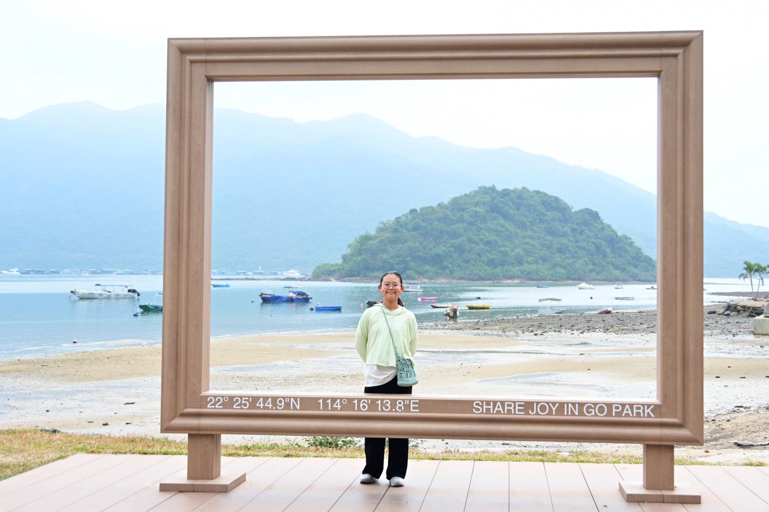 立在海边的巨幅相框,正是不久前Aiinsky带着她的两位姐姐拍过照的地方,三杯酒,这地名也是奇怪了。