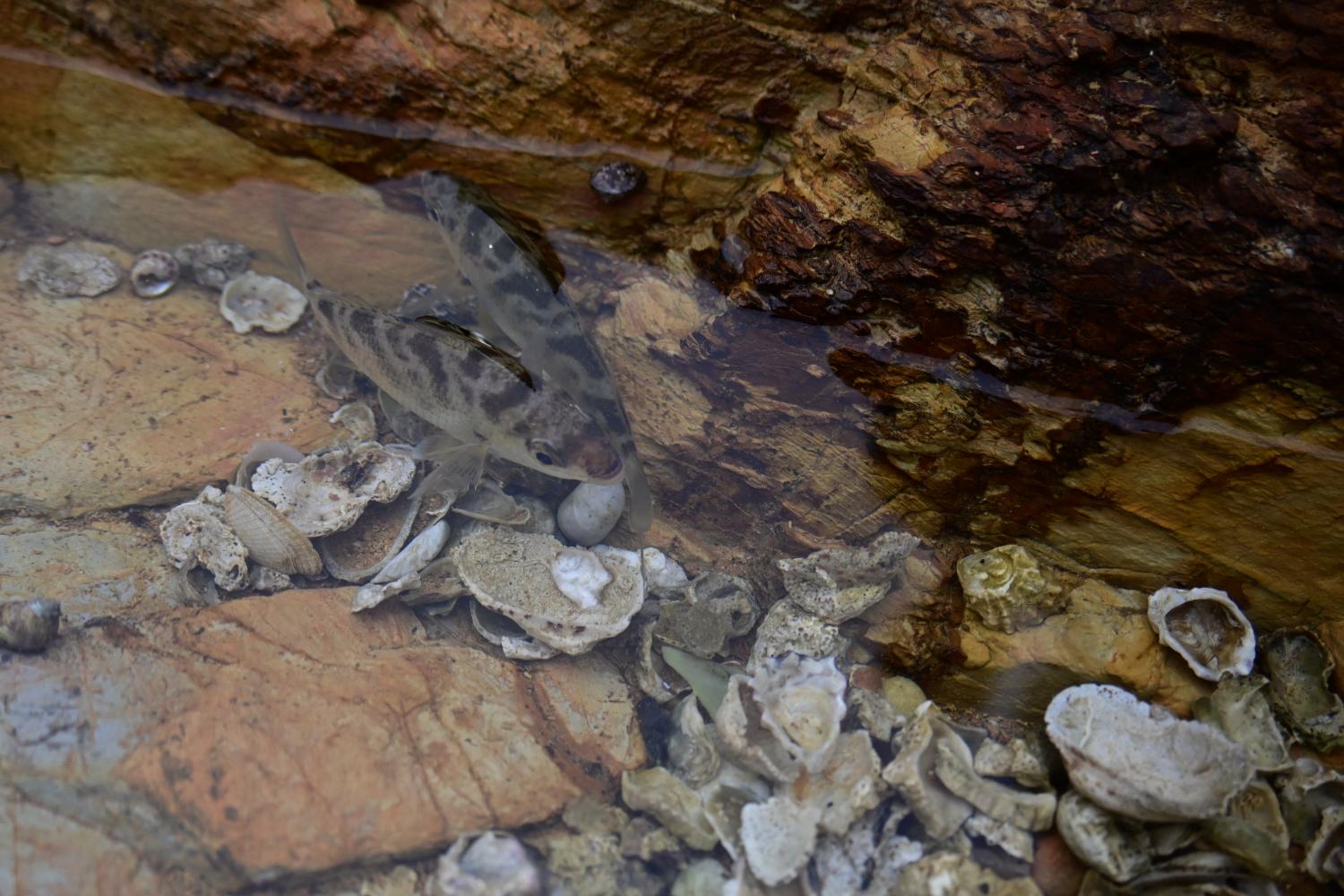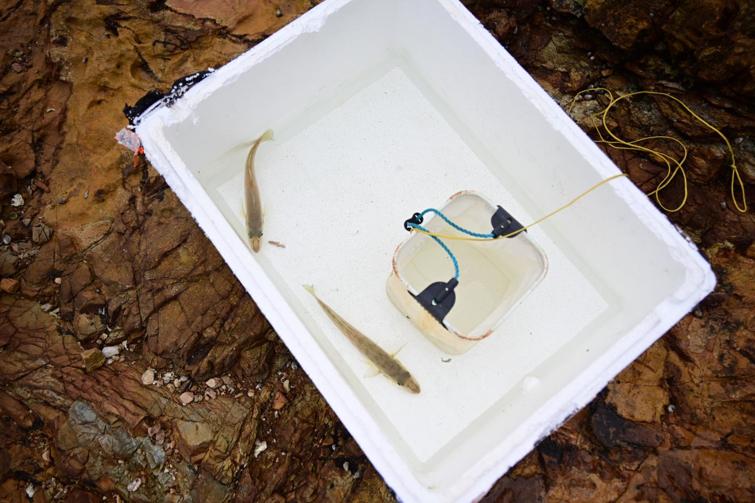 另一位垂钓者也有收获,也是两条,被放养在水坑里。