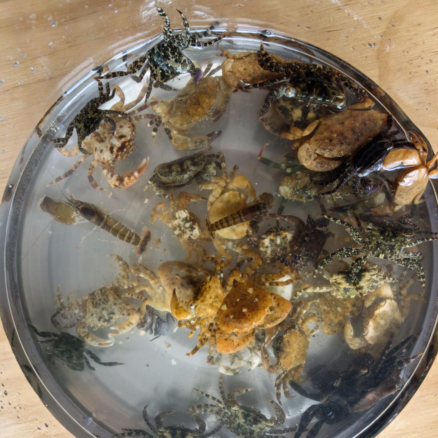 越抓越上瘾,随身带的水杯不得不贡献出来,用来装小虾。