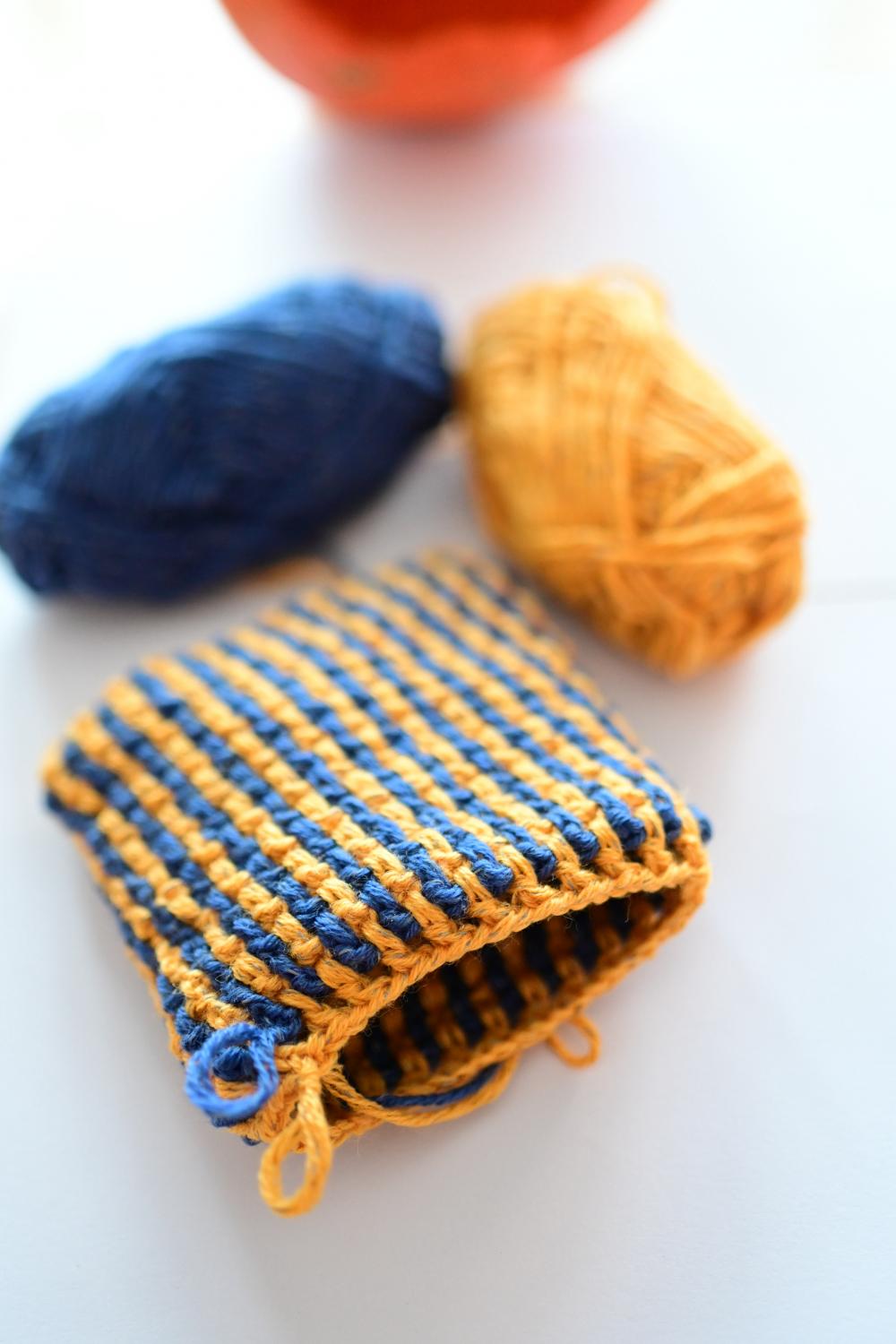 两种颜色的线材交替钩织,看着包身一圈圈变大。