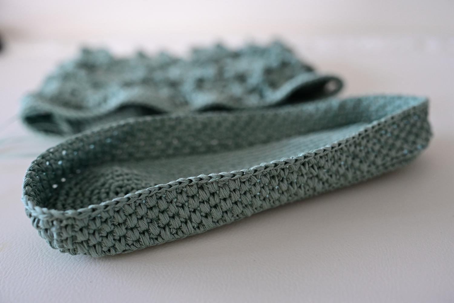 连接处上下的针法不太一样,一边是普通的短针,一边是拉长短针,个人更喜欢拉长的短针,更具立体感。